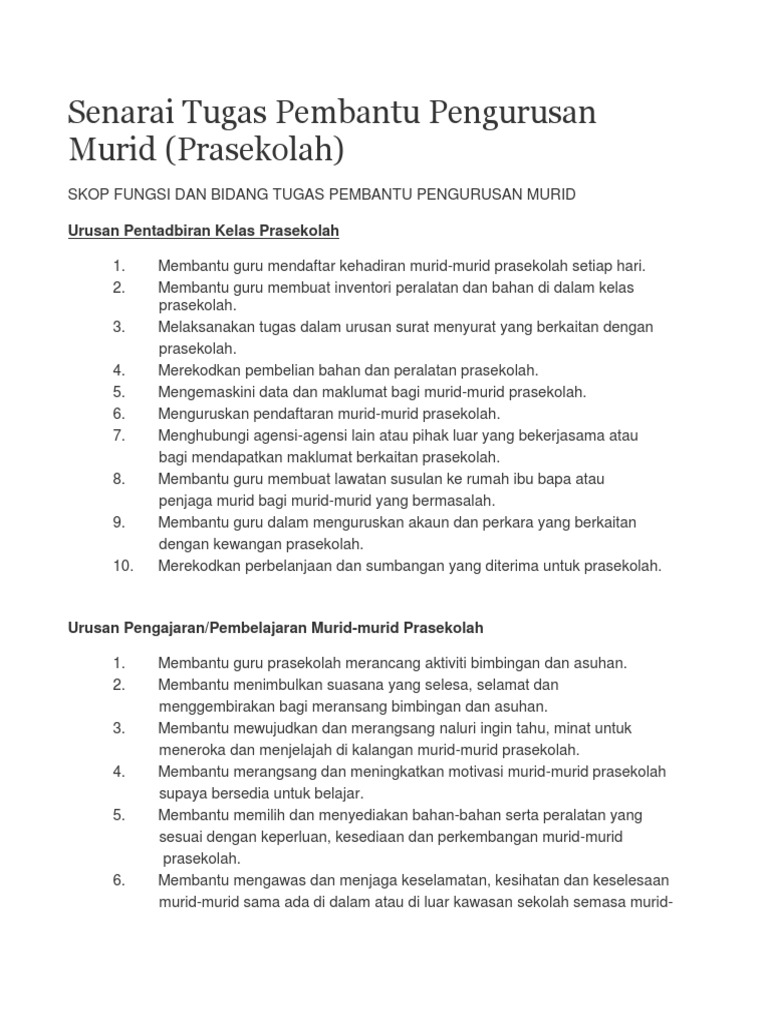 Bidang Tugas Guru Besar Tadika Tadikakite